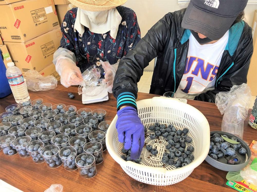 ブルーベリーの摘み取りや選果作業のお手伝いをお願いします