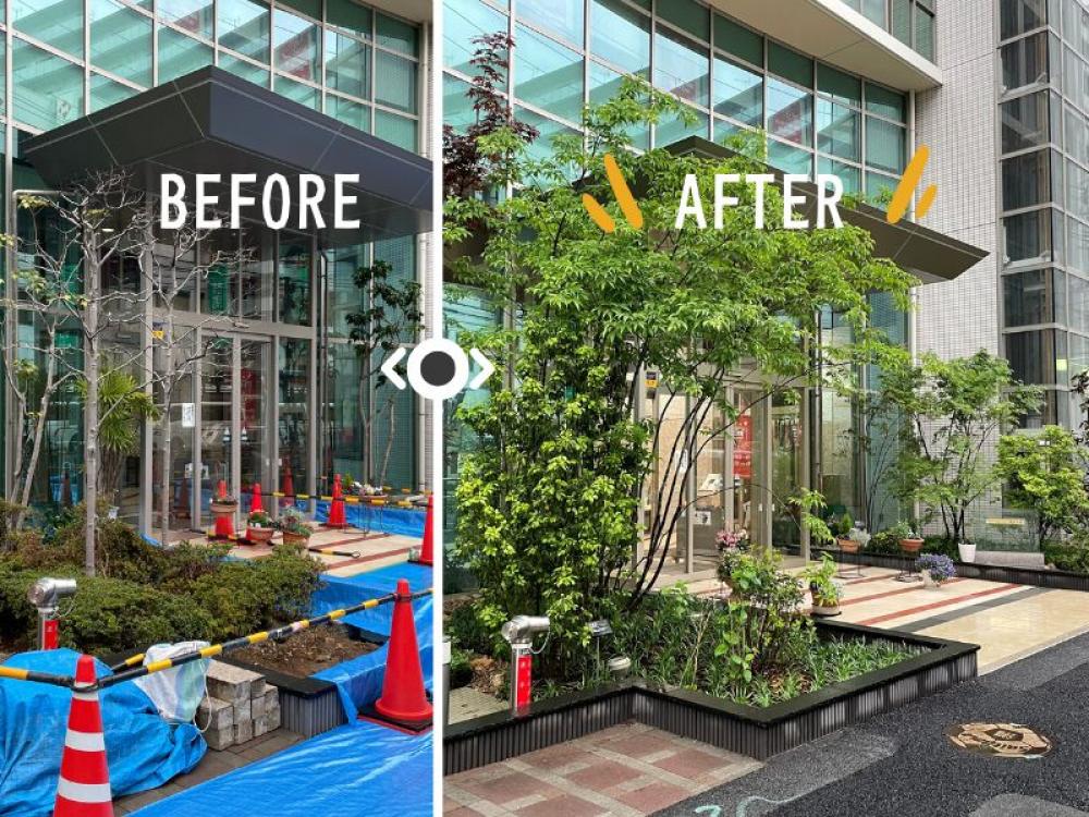 手をかけた庭園をお客様が見た瞬間の喜ばれる姿、笑顔は私たちの日々のやりがいです!募集ページのメインの写真は、マンションの入口のBefore ・Afterです。私たちの仕事で、マンションの雰囲気もがらりと変わることが伝わるでしょうか?Instagramでも仕事の様子を載せていますので、是非ご覧ください♪(URLは募集要項欄にございます。)