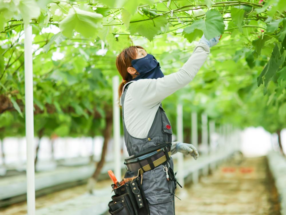 剪定、芽かき、誘引、摘房、摘粒、袋掛け、機械のメンテナンスなど