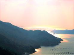 真穴みかんについて | ここ愛媛県八幡浜市真穴地区(真網代・穴井を合わせた通称名)は、四国愛媛県の西部、瀬戸内海と宇和海を隔てる日本一細長い「佐田岬半島」の付根に位置し、温暖な気候に育まれた「みかん」と、漁場豊かな宇和海で獲れる「魚」が二大産業の田舎町です。 この宇和海に面した風光明媚な地で精魂こめられ美味しく育ったみかんは、天皇杯をはじめ数多くの賞を受賞しており、全国的に有名なみかん産地となっています。秋にはたわわに実ったみかんが段々畑をオレンジ色に染め、眼下に広がるエメラルドブルーの海には小島と遠く半島を望みながら、収穫の歓びを全身で感じることが出来ます。夕方にはみかん山と街全体を島陰に沈む夕陽が温かく紅く染め、身も心もとても癒されます。 |