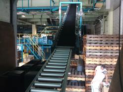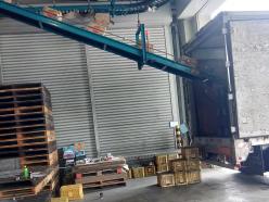 写真のようなベルトコンベアを使ってみかんが入った段ボールをトラックまで積み込んでいただく作業です。