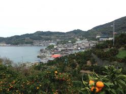 真穴みかんについて | ここ愛媛県八幡浜市真穴地区(真網代・穴井を合わせた通称名)は、四国愛媛県の西部、瀬戸内海と宇和海を隔てる日本一細長い「佐田岬半島」の付根に位置し、温暖な気候に育まれた「みかん」と、漁場豊かな宇和海で獲れる「魚」が二大産業の田舎町です。 この宇和海に面した風光明媚な地で精魂こめられ美味しく育ったみかんは、天皇杯をはじめ数多くの賞を受賞しており、全国的に有名なみかん産地となっています。秋にはたわわに実ったみかんが段々畑をオレンジ色に染め、眼下に広がるエメラルドブルーの海には小島と遠く半島を望みながら、収穫の歓びを全身で感じることが出来ます。夕方にはみかん山と街全体を島陰に沈む夕陽が温かく紅く染め、身も心もとても癒されます。 |